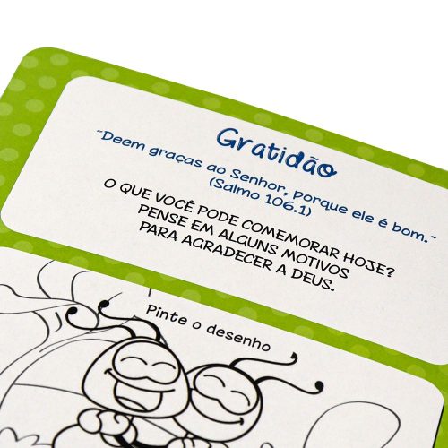 “Um livro para pintar com água” é uma série divertida, cheia de atividades e desenhos para colorir com a ponta dos dedos. São dois títulos: O que Deus espera de mim e Deus está comigo. Para pintar e encontrar as imagens solicitadas, basta a criança molhar com água a ponta dos dedos ou um pincel. Depois de seco, é possível pintar novamente. As crianças ficarão encantadas descobrindo todos os detalhes da história enquanto aprendem sobre as histórias bíblicas.