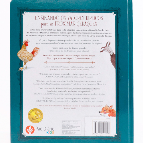“Usando o formato clássico de fábula, este livro traz nove histórias seguidas de uma aplicação moral. Com humor e muita imaginação, cada narrativa é acompanhada de uma contraposição entre os valores mundanos e os bíblicos.